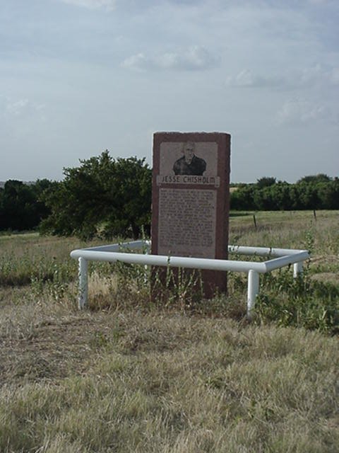 Born in Tennessee in 1805 of Scottish and Cherokee descent, Jesse Chisholm came to Indian Territory in the 1820's for 40 years he operated trading posts near Asher, Purcell Watonga and Okla. City. Also a guide, freighter, interpreter, salt works owner and peacemaker. Few men in the territories were so well known by the Indian. Due to this part of his freighting route became know as the Chisholm trail. He died on March 4, 1868 after eating bear meat cooked in a copper kettle and was buried near Left Hand Spring Allotment of his old friend Chief Left Hand NE of present Geary the inscription on his grave. No one left his home cold or hungry, is a tribute to the character of this rugged individual.