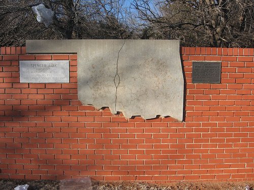 Chisholm Trail Marker erected on Land of John E. Kirkpatrick given to him by his grandmother, Mrs. Lewis Mortimer Spencer, on date of his birth, Feb. 13, 1908. His grandfather , Lewis M. Spencer, was one of Yukon Founders.