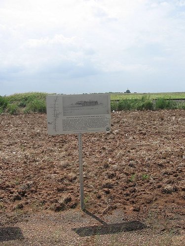 One half mile due west of the location stood Buffalo Springs Trading Post, Ranch, and Stagecoach stand. This sketch of the ranch was made by Adolph Hunnius. A surveyor, in 1876. Buffalo Springs was a well - used stop for drovers and herds along this western trail variant. it was from this location that the ill - fated Hennessey Party departed on July 4, 1874. Headed south along the Ft. Sill - Arkansas City wagon road despite warning of Indian hostilities in the area. A few miles south, the Party was attacked and killed.
