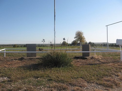 Highway US 81 at Terral, Ok turn east on Apache, follow road, road turns into Fleetwood Rd. go about 5.5 miles. Marker is on south side of road.