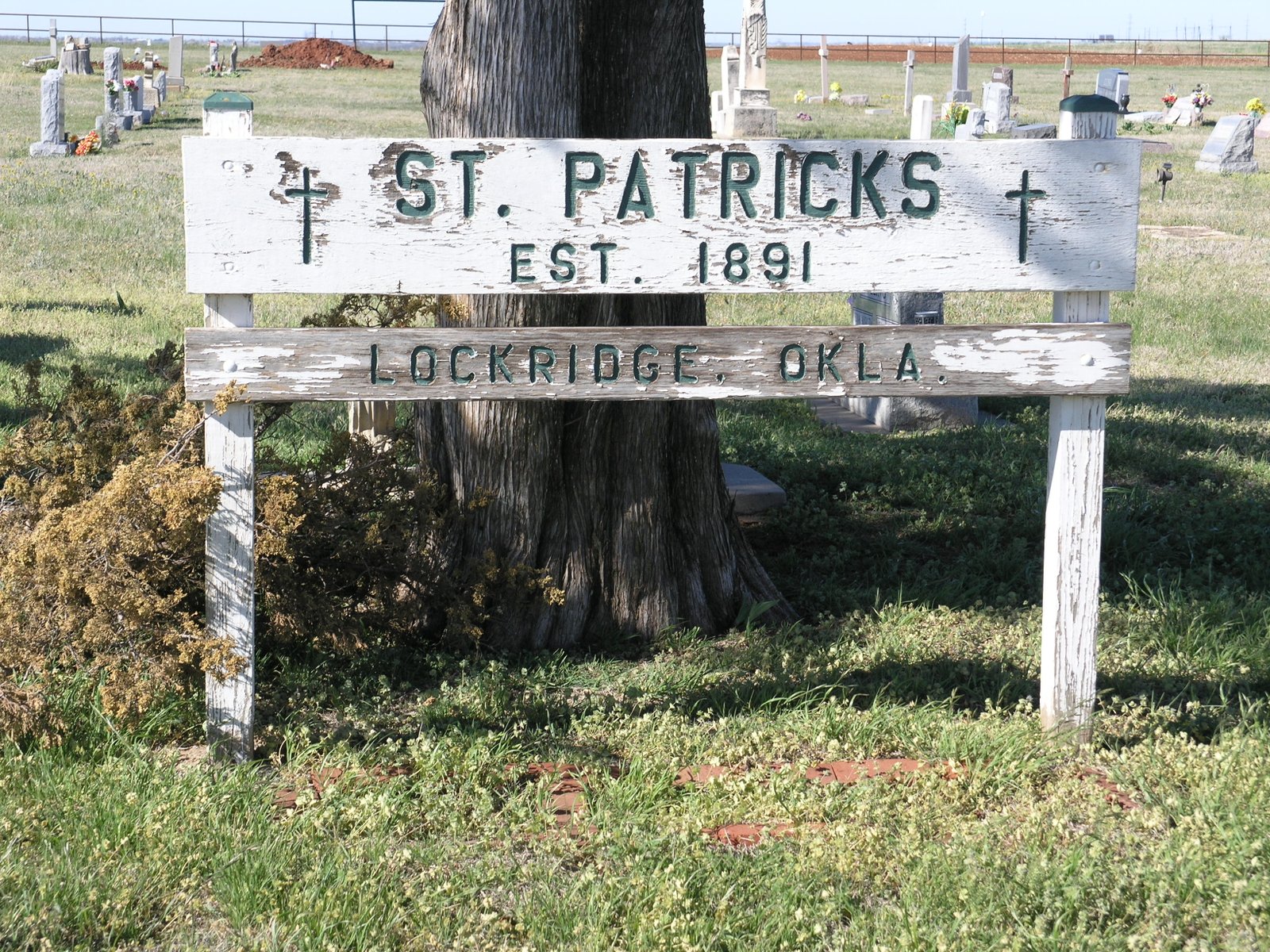 As a mission of St. John the Baptist Catholic Church in Edmond, St. Patrick was reportedly the first rural church of any denomination to be built in the Unassigned Lands following the Run of 1889, with the cornerstone being placed in 1891. Known by several names over the years (Kerry Patch, Deer Creek, and Lockridge), the church was abandoned in the 1930s and no longer stands.