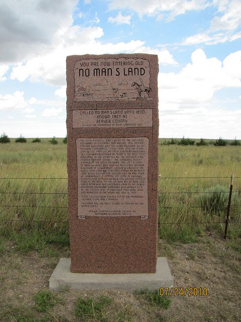 The 37th parallel was chosen as the southern boundary of Colorado and Knasas. New Mexico's eastern boundary was the 103rd meridian by the Missouri Compromise. Texas came into the Union with 36° 30' parallel as their northern boundary. This northern boundary of Texas is the only state boundary in the Union set by the Missouri Compromise (Mason-Dixon). The Cherokee Outlet stopped at the 100th meridian. This left a strip of land, 34 miles wide and 107 miles long without any form of government. Congress called it the Public Land Strip but it became known as No Man's Land, being outside any jurisdiction or any form of government. It became the home of outlaws, cowboys and settlers. Beaver City was the largest town in the area. By the Organic Act of 1890, Congress attached this unclaimed land to the newly organized Oklahoma Territory with Beaver City as the County Seat. It continued thus until Oklahoma was admitted to the Union, Sat. Nov. 16, 1907.