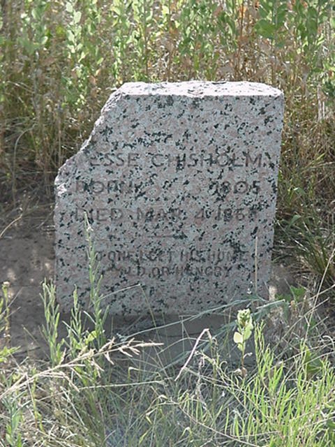 Born in Tennessee in 1805 of Scottish and Cherokee descent, Jesse Chisholm came to Indian Territory in the 1820's for 40 years he operated trading posts near Asher, Purcell Watonga and Okla. City. Also a guide, freighter, interpreter, salt works owner and peacemaker. Few men in the territories were so well known by the Indian. Due to this part of his freighting route became know as the Chisholm trail. He died on March 4, 1868 after eating bear meat cooked in a copper kettle and was buried near Left Hand Spring Allotment of his old friend Chief Left Hand NE of present Geary the inscription on his grave. No one left his home cold or hungry, is a tribute to the character of this rugged individual.