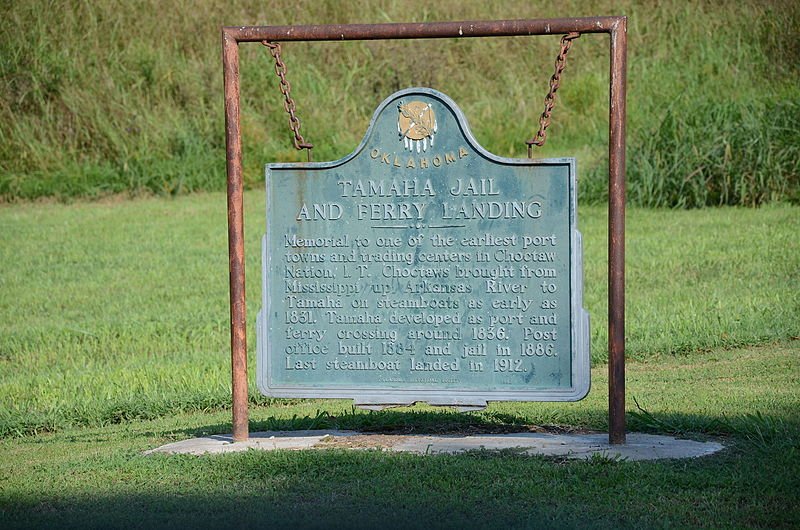 One of earliest port towns and trading centers in Choctaw Nation, I.T. Chotaws brought from Mississippi up Arkansas River to Tamaha on steamboats as early as 1831. Tamaha developed as port and ferry crossing around 1836. Post office built 1884 and jail in 1886. Last steamboat landed in 1912. 3 Mil east of Stigler, SH SH 9.