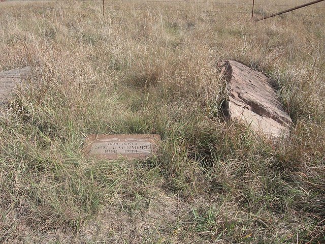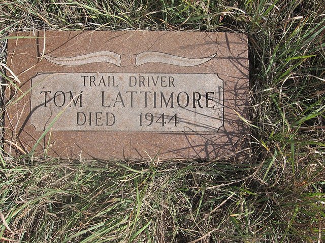Price ranch hand, Tom Lattimore, was buried southwest of the monument, sometime during the 1940's, he was the first black hand, Lattimore was a Chisholm Trail cowboy . He wanted to be buried on Monument Hill and his reason "the cowboys will always be going by there and they'll stop and remember me". He was in his 80's when he died. His marker was not damaged when the monument was vandalized.