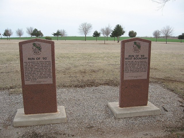 Many campers sat by their fires the night before the opening of "Old Oklahoma". The next day at noon on April 22, 1889, many people set out running on foot and by horse for 160 acre land claims in Unassigned Land East.