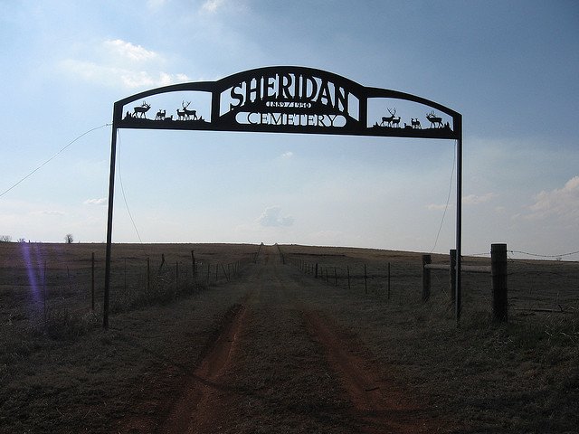 5miles west OK highway 51/74 on OK 51. West of Roxanna, Oklahoma. Signs on south side of highway. Sheridan Cemetery is located south of sign on Highway.