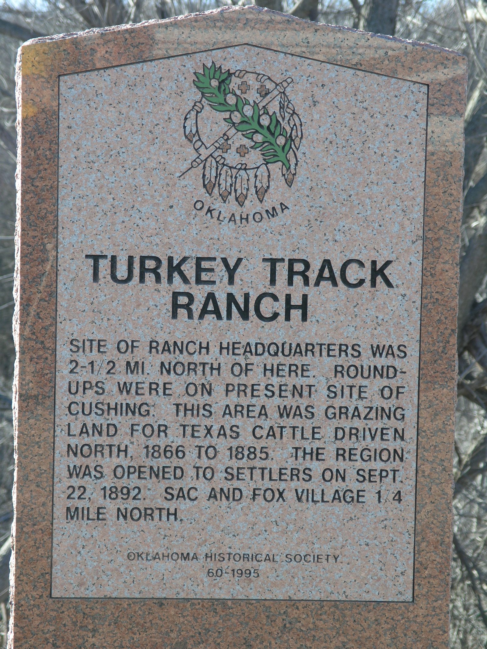 Site of ranch headquarters was 2-1/2 mi north of here. Roundups where on present site of Cushing. This area was grazing land for Texas cattle driven north 1866 to 1885. The region was opened to settlers on Sept. 22, 1892. Sac and Fox village 1/4 mile north.