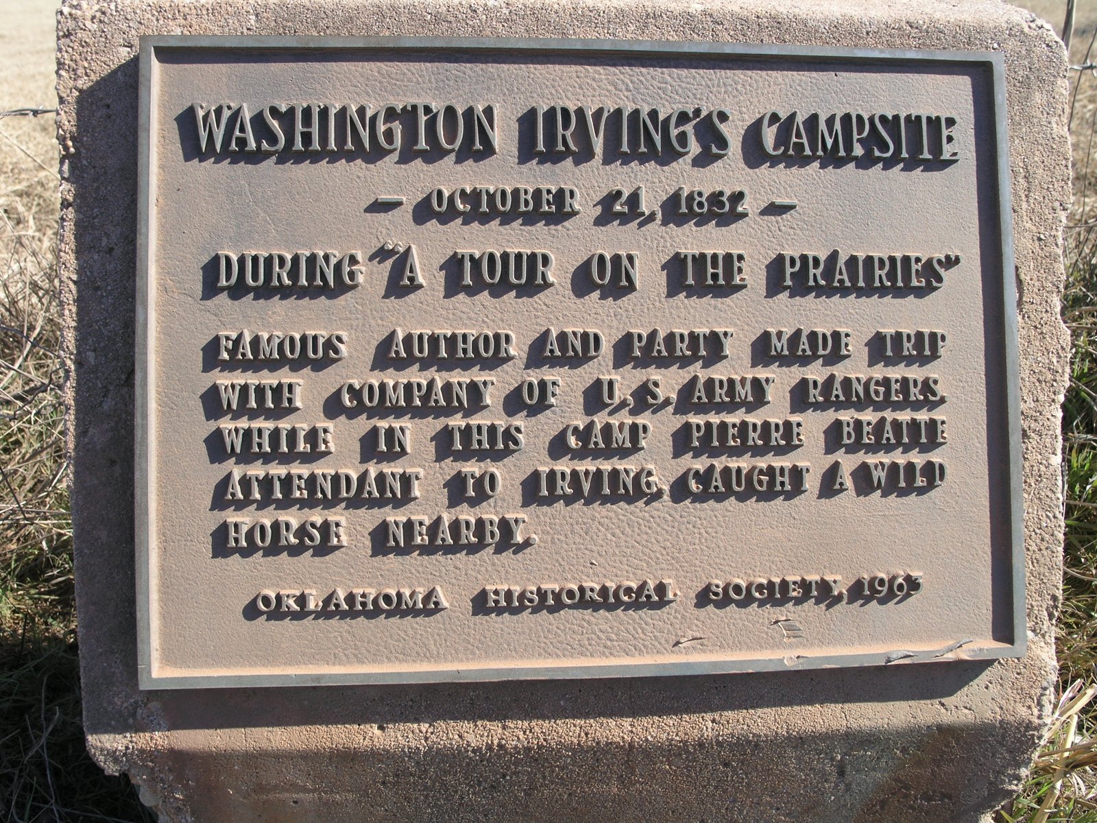 Famous author and party made trip with company of U.S. Army Rangers. While in this camp Pierre Beatte attendant to Irving, caught a wild horse nearby.