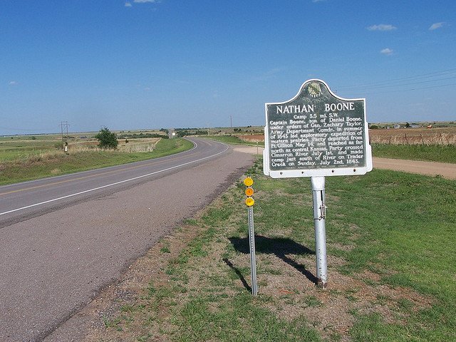 Captain Boone, son of Daniel Boone, under orders of Gen. Zachary Taylor, Army Department Comdr., in summer of 1843 lead exploratory expedition of western prairies. Party departed from Ft. Gibson May 14, and reached as far north as central Kansas. Party crossed Cimarron River July 1st, and made camp just south of River on Trader Creek on Sunday July 2nd, 1843.